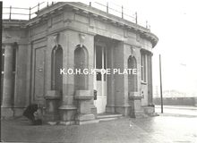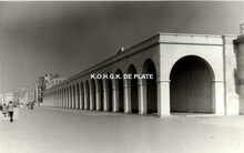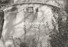 Formaat : 8,5 x12,5 cm. - Detail van de arduinen sokkel van de derde watertoren aan de Mercatorlaan. Onder het wapenschild van Oostende (schild met keper en 3 sleutels) staat volgend opschrift (moeilijk leesbaar):