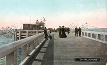 Edit. V.G., Bruxelles. - Ostende, l'Estacade. - Bijgekleurde kaart. - Het einde van het Weststaketsel, met het cafΓ©paviljoen waar je op het terras kon genieten van de gezonde zeelucht. Met een kruisnet kon je proberen een krabbetje of visje te vangen. Oostende in de Belle Epoque.