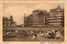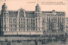Ostende - L'hΓ΄tel Continental et la plage. The Continental Hotel and the beach. - Vooraan, strandrecreatie op het Groot Strand