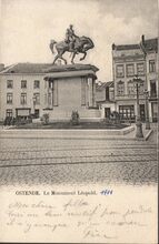 Ostende - Le Monument LΓ©opold. - Het monument is nog niet volledig afgewerkt. De bronzen bas-reliΓ«fs met vaderlandse allegorieΓ«n zijn nog niet aangebracht.