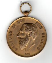 Op de voorzijde : rondom links LEOPOLD II ROI, centraal het hoofd van koning Leopold II naar links gericht, rondom rechts DES BELGES, midden onder gesigneerd H. FT(?)