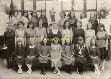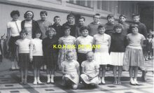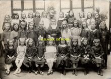 Afdruk. - Formaat : 14 x 20 cm. - De leerlingen van het 6e leerjaar van de Dr. Ed. Moreauxschool op de Vuurtorenwijk in het schooljaar 1962-63.