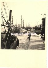 Formaat : 7 x 6 cm. - Vissersvaartuigen in het Montgomerydok langs de Visserskaai