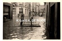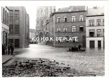 Formaat : 6 x 9 cm. - De Bredensesteenweg. In Bredene-Sas tussen Spuikom en de vaart naar Brugge, werden deze kleine arbeiderswonngen overstroomd. Vier slachtoffers werden door een duiker uit de huizen gehaald. (Zeewacht 20/01/1993)