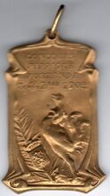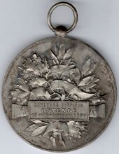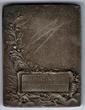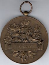 Op de keerzijde : van onder naar linksboven een lauriertak, midden onder op een plaket horizontaal OSTENDE / CONCOURS HIPPIQUE INTERNATIONAL / 15 16 17 ET 18 JUIN 1907