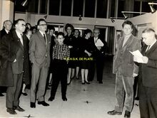 Formaat : 18 x 24 cm. - De genodigden tijdens de vernissage in de inkomhall op 2 april 1966