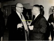 Formaat : 18 x 24 cm. - De kunstenaar in gesprek met Paul-Henri Spaak tijdens de vernissage in de inkomhall op 2 april 1966
