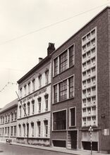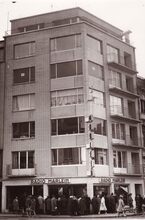 Formaat : 18 x 13 cm. - De ingang van de winkel lag in de Kapellestraat, de ingang van het appartementsgebouw in de Jozef II-straat.