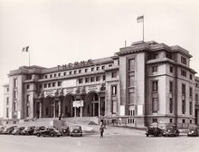 Formaat : 18 x 24 cm. - Het Thermaal Instituut aan de Koningin Astridlaan, er zijn zwemkampioenschappen bezig.