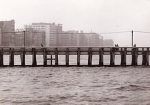Formaat : 13 x 18 cm. - Enkele vissers op het Weststaketsel volgen de wedstrijd.