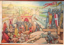 Schoolwandplaat : De intrede van Godfried van Bouillon te Jerusalem = EntreΓ© de Godefroid de Bouillon a JΓ©rusalem ; nr. 7