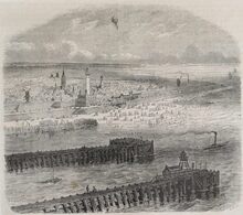 Zicht op oostende op boomschors. Zeedijk,Chalet e...