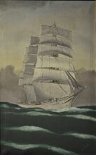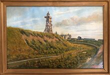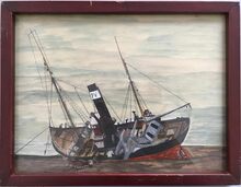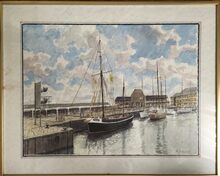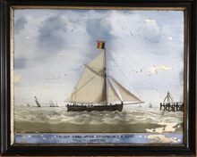 Vissersvaartuig O. 18 Liliane in de havengeul, in de achtergrond het Ooststaketsel met tijseinpost.