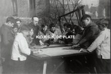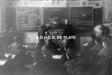 Formaat : 10 x 14,5 cm. - De school vΓ³Γ³r de Tweede Wereldoorlog. Jonge leerlingen leren knopen leggen