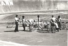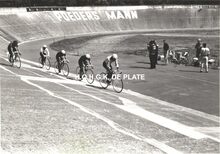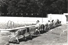 Formaat : 213 x 18 cm. Zwemfeest te Brussel met trainer Everaerts
