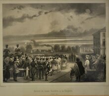Litho : Arrivée du convoi funèbre à la Coupure