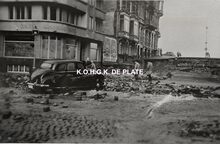 Formaat : 17,5 x 24 cm. - Men is begonnen met het herstel van de schade op de oosteroever. Op de achtergrond, het tijseinpost op het Ooststakestel.