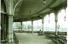 Tropic T 498. - Kursaal Oostende. - Detail van de open galerij van het derde Kursaal langs de noordgevel. We zien de Zeedijk, richting Koninklijk Chalet