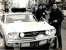 Formaat : 18 x 14 cm. - De Van Iseghemlaan nabij de hoofdingang van de Kursaal. Jean-Louis Trintignant (vooraan) en Henri Chemin met hun Ford Mustang namen deel aan de 100ste Rallye Monte-Carlo van 14/01-20/01/1966. Zij reden de wedstrijd niet uit. De rallye werd gewonnen door Pauli Toivonen en Ensio Mikkander in een CitroΓ«n DS 21.