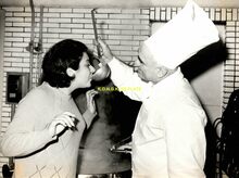 Formaat : 18 x 24 cm. - Meesterkok Richard Parmentier laat Paulette De Keyser, hostess van de Kursaal, proeven van zijn kookkunst