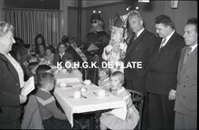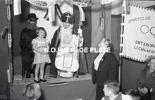 Formaat : 6 x 9 cm. - Naast Sinterklaas, rechts, schepen Kamiel Dehouck en Norbert Van der Cruyssen