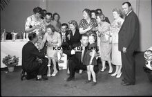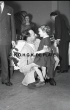 Uit : De Zeewacht. - Foto : Raoul Servais met handvol leerlingen in de turnzaal