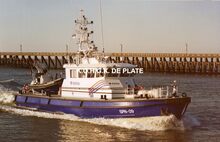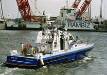Formaat : 10 x 15 cm. De patrouilleboot ligt in het Montgomerydok voor het loodswezengebouw
