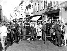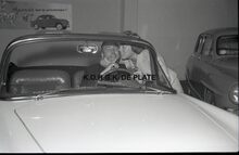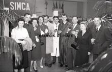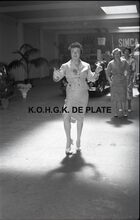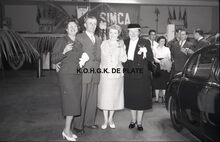 Formaat : 18 x 24 cm. - Tentoonstelling van beeldhouwwerken van Koningin Elisabeth in de Montrosezaal van 14 tot 22/08/1965 ten voordele van Oxfam. De baronnes wordt begroet door een ere-haag van Oostendse scouts. Zij is het gezelschap van haar echtgenoot, Roger De RamΓ©e, directeur van de Kursaal en schepen Joazf Van den Kieboom