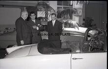 Formaat : 18 x 24 cm. - Tentoonstelling van beeldhouwwerken van Koningin Elisabeth in de Montrosezaal ten voordele van Oxfam van 14 tot 22/08/1965. Hier in de Montrosezaal in het gezelschap van Roger De RamΓ©e, directeur van de Kursaal.