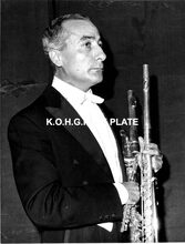 Formaat : 24 x 18 cm. - Severino Gazzelloni, fluit, trad op met het 3Lyrisch Orkest van de BRT", dirigent Charles Vandezande.