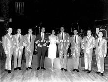 Formaat : 18 x 24 cm. - Merino Costa en zijn muzikanten en de zangeres Rita Gutta in de nightclub "La Champagne". Tweede van links, pianist Franz André.