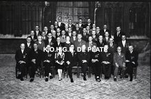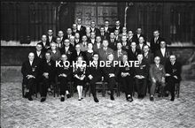 Negatief : 6 x 9 cm. - De gedecoreerde personeelsleden van de firma Valcke van de vestigingen in Oostende, Antwerpen en Parijs.
