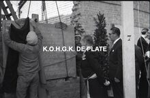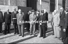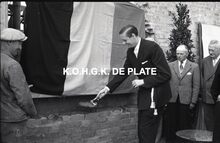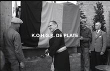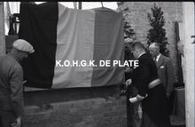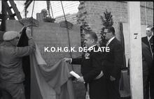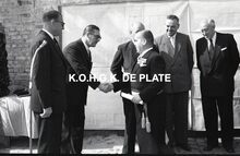 Negatief : 6 x 9 cm. - In aanwezigheid van de schepenen Maurice Quaghebeur sr. en Emiel Vroome.