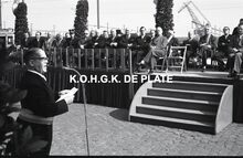 Negatief : 6 x 9 cm. - Burgemeester Adolf Van Glabbeke houdt zijn toespraak.