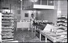 Negatief : 6 x 9 cm. - De toonbank van de slagerijafdeling tijdens de paastijd.