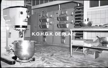 Negatief : 6 x 9 cm. - De toonbank van de slagerijafdeling tijdens de paastijd. Als afsluiting van de vastentijd en als voorbereiding op pasen versierden de slagers in de periode van Witte donderdag en Goede vrijdag hun etalages en toonbanken.