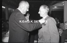 Negatief : 6 x 9 cm. - Een personeelslid krijgt een ereteken.