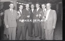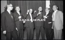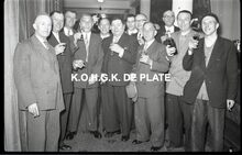 Negatief : 6 x 9 cm. - Middaguur. Receptie voor de stadsnotabelen, de klanten en de leveranciers van de firma. Tweede van rechts, Jacques Bonnevie, afgevaardigde-beheerder.