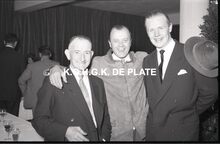 Negatief : 6 x 9 cm. - Jacques Bonnevie, afgevaardigde-beheerder, werd ere-burger van de Kapellestraat. Naast hem, links, Theo Dehaene, eerste ere-burger van de Kapellestraat. Rechts, burgemeester Adolf Van Glabbeke.