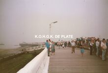Formaat : 10 x 15 cm. Veel volk op het Weststaketsel in afwachting
