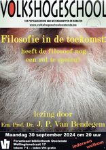 Formaat : 42 x 30 cm. - Heeft de filosoof nog een rol te spelen? Lezing door Em. Prof. dr. J. P. Van Bendegem