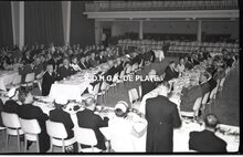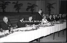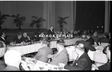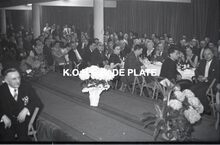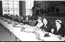 Negatief : 6 x 9 cm. - Adolf Van Glabbeke, minister van openbare werken en wederopbouw, heeft het woord. Rechts, mevrouw Van Glabbeke en naast haar Edouard Delcroix