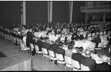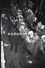 Zwart/wit foto Antony 230854-21. Formaat : 13 x 18 cm. β Een bomvolle zaal woonde het concert bij.