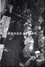 Negatief : 6 x 9 cm. - Plechtige ontvangst door het stadsbestuur van de raad van bestuur, de familie en het personeel van de firma Valcke. Het gerechtshof was toen dienstdoend stadhuis.