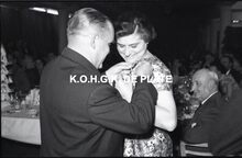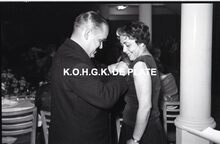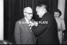 Negatief : 6 x 9 cm. - Een personeelslid krijgt een ereteken.