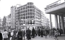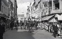 Negatief : 6 x 9 cm. - De rijkswacht te paard in de Adolf Buylstraat. Rechts op de hoek met de Christinastraat, de schoenenwinkel van Timmermans.