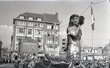 Negatief : 6 x 9 cm. - Stoet naar een ontwerp van kunstschilder Emile Bulcke. Praalwagen op het Wapenplein