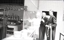 Negatief : 6 x 9 cm. - Rondleiding in de keuken met minister Ludovic Moyersoen, schepen Jan Piers en Roger De Ramée, directeur van de Kursaal.