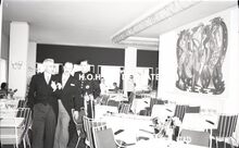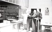 Negatief : 6 x 9 cm. - Rondleiding in het restaurant "Le Périgord". Met minister Ludovic Moyersoen, schepen Jan Piers en Roger De Ramée, directeur van de Kursaal.