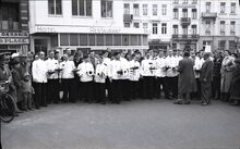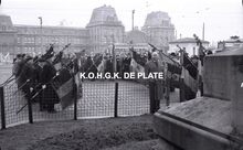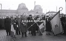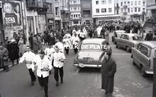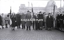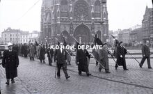 "De man met de wandelstok vooraan is de heer Frans Pauwels. De man rechts naast de vaandeldragers is de heer Bob Dumortier" (medegedeeld door Arne Pyson)